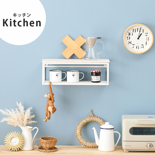 壁掛けラック ショートタイプ 約幅45×奥行15.5×高さ16.5cm ホワイトウォッシュ スチール ウォールシェルフ リビング【代引不可】