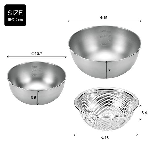 機能的な設計と手にやさしい滑らかな仕上げのボウル15cm、ボウル18cm&パンチングボウル15cmの3点セット。