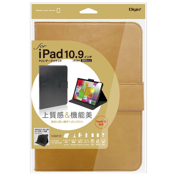 Digio2 iPad 10.9インチ用 PUレザージャケット キャメル TBC-IP2208CA