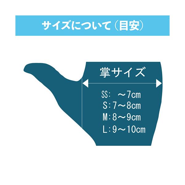 厚さ : 指先0.1mm、手のひら0.08mm、手首0.07mm