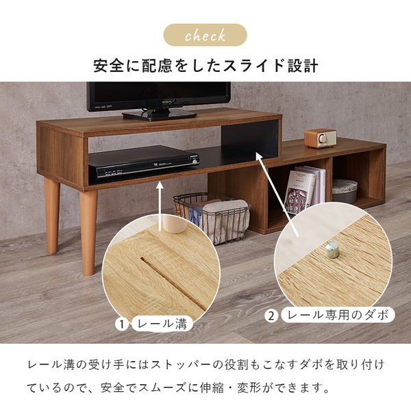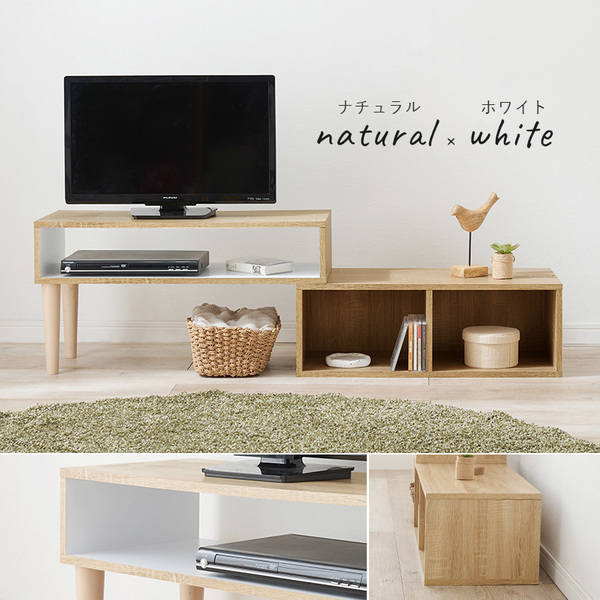 テレビ台 テレビボード 約幅75〜135cm ナチュラル×ホワイト スライド式 伸縮式 TV台 組立品 リビング ダイニング【代引不可】