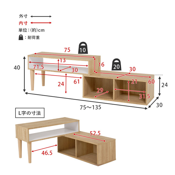 ■サイズ(約)幅75〜135×奥行30×高さ40cm