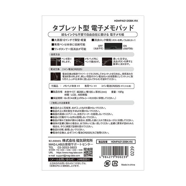 【5個セット】 HIDISC 12インチ タブレット型 電子メモパッド HDMPAD120BK-RXX5