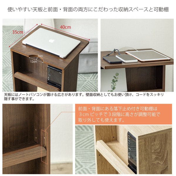サイドテーブル サイドラック 約幅40cm ナチュラル 両面収納付き キャスター付き 組立品 リビング ベッドルーム 在宅ワーク 【代引不可】