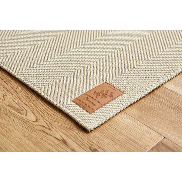 4色から選べるジャガード生地のナチュラルラグ。オールシーズン対応で、すべり止めも付いていて、洗濯機で洗える。機能面もバッチリ。糸の組み合わせ方にこだわりました。