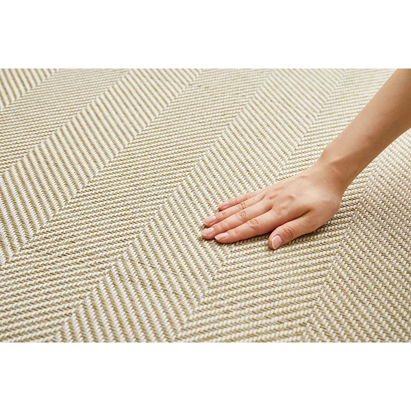 4色から選べるジャガード生地のナチュラルラグ。オールシーズン対応で、すべり止めも付いていて、洗濯機で洗える。機能面もバッチリ。糸の組み合わせ方にこだわりました。