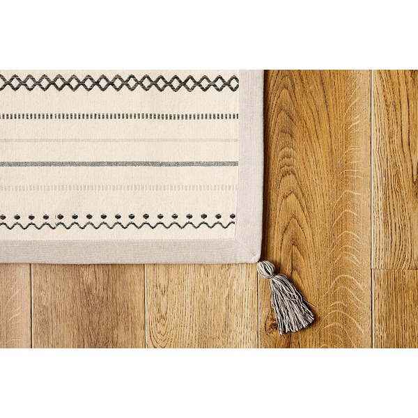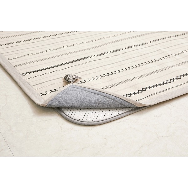 さらっとした踏み心地とインド綿ならではの素朴な仕上がりが魅力のラグ。四隅に付いたフサ(タッセル)でおしゃれ度アップ!吸湿発乾性が良く年中使えるタッチ感もインド綿の人気の秘密です。お客様のご要望に応えて、すべり止め付きを開発しました!