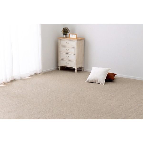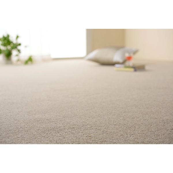 自然の生命力が生みだすウールの実力。天然素材ウール100%で防炎・防ダニ・抗菌加工付だから清潔で安心のじゅうたん。ベーシックカラーを小粒のループに仕上げました。ウールカーペットは長期間にわたりホルムアルデヒドを吸着し、お部屋の空気を浄化してくれます。大切に長く使いたい方にもおすすめです。少し毛羽立ち感が少しあり、密度少な目でふんわりとやさしいタッチ、2色の糸で仕上げたループタイプのカーペットです。