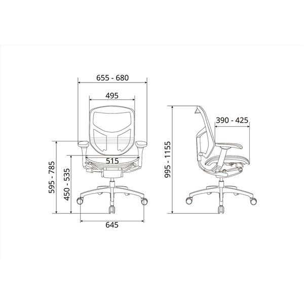 【サイズ(約)】 幅680×奥行645×高さ995〜1155mm・肘高さ : 595〜785mm・座面高さ :450〜535mm