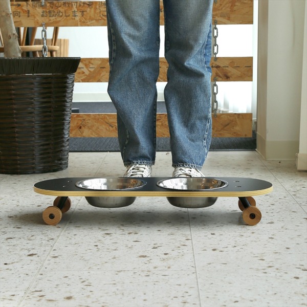 遊び心をくすぐるスケボー風デザインのフードボウル。タイヤは動かない仕様になっているので、安心してお食事できます。また、お皿は取り外し可能なので、お手入れも簡単です。ペットの食事タイムを楽しく彩る、おすすめの商品です。サイズは2種類展開!