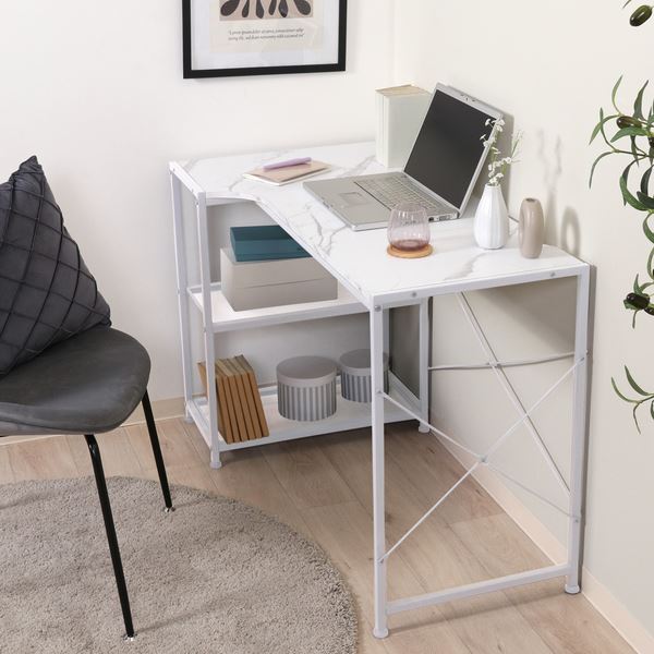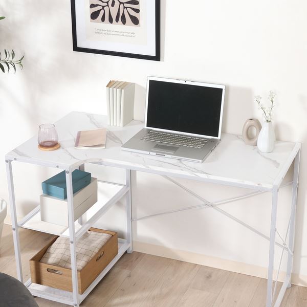 作業が捗るL字型天板はPCデスクとしても、勉強や作業をするのにも快適です。