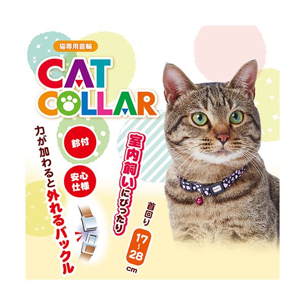 ボーダーとドットのデザインがかわいい猫専用首輪。力が加わると外れるバックル仕様。鈴付。