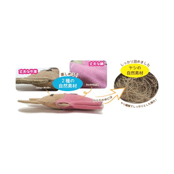 わんちゃんが好きな牛革を使ったうさぎ・ぞう・ひよこがモチーフのおもちゃです。それぞれ洋服を着ています!噛みごこち、牛革のにおいがたまらない!中にはヤシ繊維!