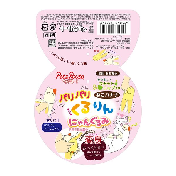 飼い主さんが振ったり、ひっくり返して変身させて、興味を引かせ、遊べます。頭部分にキャットニップ入り。