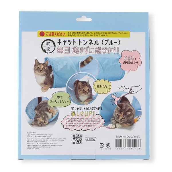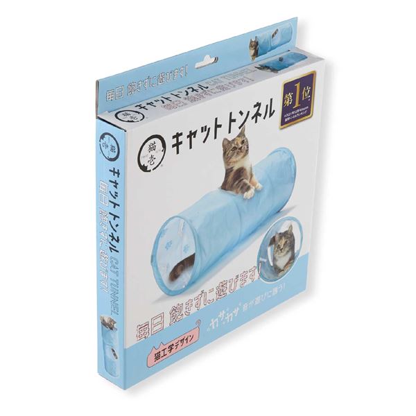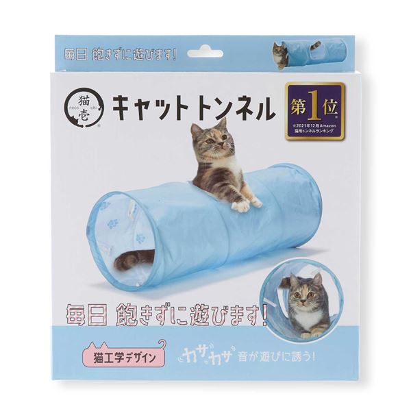 猫が大好き!カサカサ素材のトンネル。猫が飛び込んだり駆け抜けたりするたびにカシャカシャと音がして、毎日飽きずに遊んでくれること間違いなし。ひとり遊びも楽しめちゃいます。