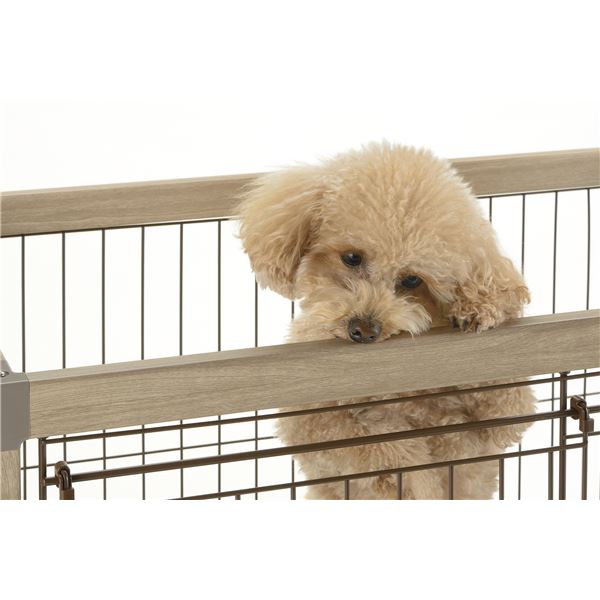木製に見えるリアルな質感!傷みにくいアルミ製サークルです。スタイリッシュな木目柄フレームでおしゃれなお部屋を演出します。