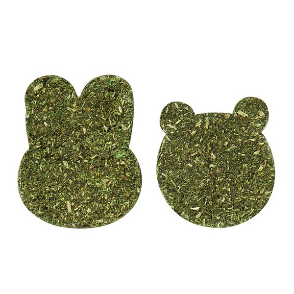 アルファルファをうさぎやハムスターの形に固めて作った天然素材のおもちゃです。(米でんぷんで固めています。)ハムスター、うさぎ、モルモットなどの小動物が楽しくかじってストレス解消にピッタリです。歯の伸びすぎ防止にも。