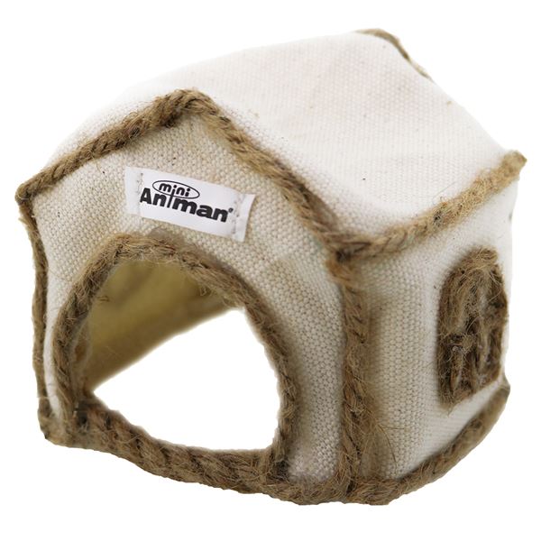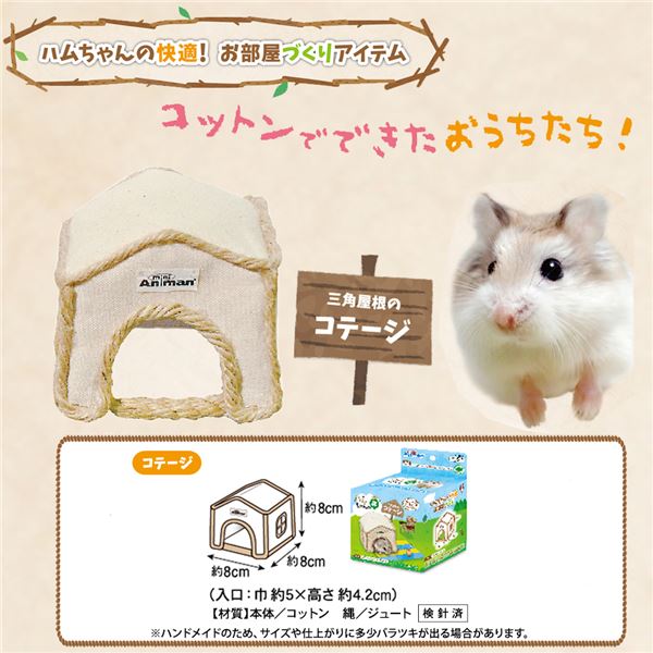 ナチュラルで優しい感じの「三角屋根のハウス」、ジャンガリアンなどのハムスター用。コットン素材なのでほどよい通気性と心地よさは一年中ずっと快適。