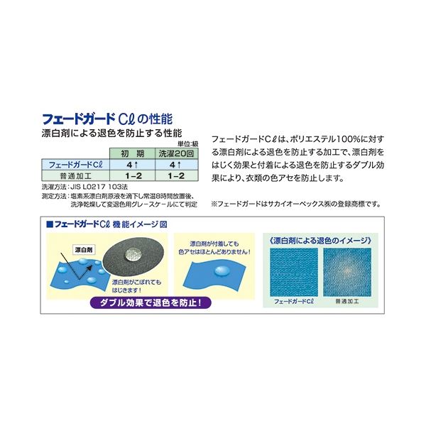 漂白剤による退色を防止する加工をした胸当てエプロン。