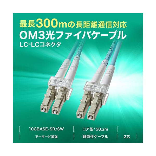 ●10GBASE-SR/SW規格伝送に対応する10ギガビット高速通信が可能なOM3仕様準拠の光ファイバーケーブルです。