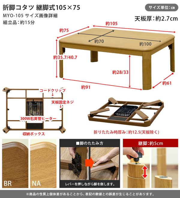 こちらは「折れ脚コタツ 継脚式 幅約105cm BR(ブラウン)」の商品ページです。商品画像や商品情報には、色違いやサイズ違いの商品が載っている場合がございます。ご注文前に色・サイズ・セット内容のご確認をお願いいたします。