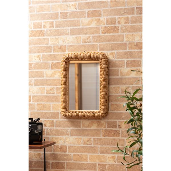 【素材】ラタン ラッカー塗装 ミラー ※ミラー部サイズ:W19×H29cm