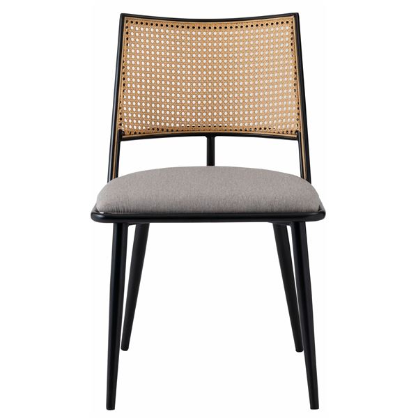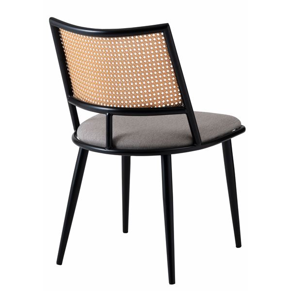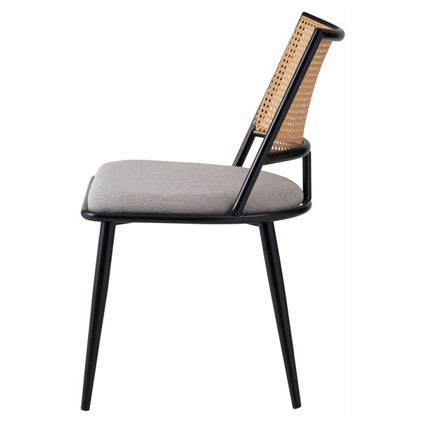 ●ポリエチレン素材のラタン調デザインを施した背面と、ファブリック素材の座面の組み合わせが新鮮なチェア。