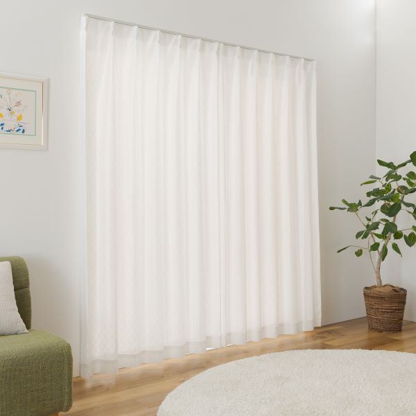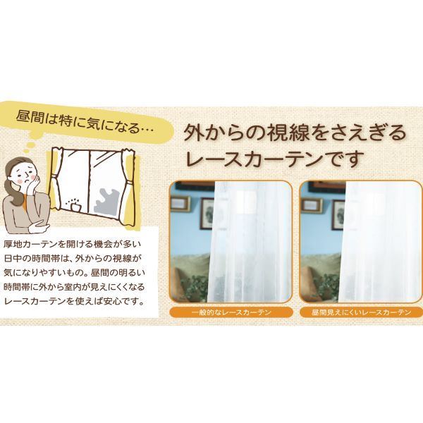 レースカーテン 約幅100×丈198cm×2枚セット ホワイト レースカーテン UVカット プライバシー 省エネ 断熱保温 シンプル 防犯 北欧 デザイン レースルーシェ