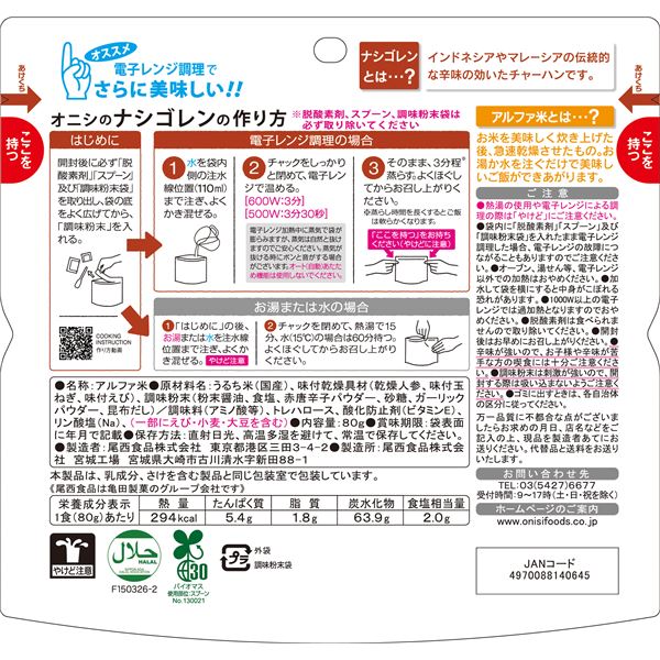 ■原材料名:うるち米(国産)、味付乾燥具材(乾燥人参、味付玉ねぎ、味付えび)、調味粉末(粉末醤油、食塩、赤唐辛子パウダー、砂糖、ガーリックパウダー、昆布だし)/調味料(アミノ酸等)、トレハロース、酸化防止剤(ビタミンE)、リン酸塩(Na)、(一部にえび・小麦・大豆を含む)