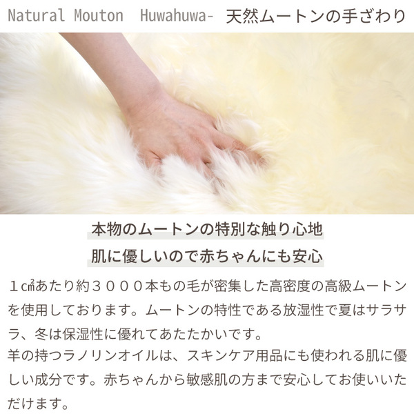 ムートンの毛は1平方センチあたり、約3000本の毛が生えており、人間の毛が約100‾200本ですので比較すると驚きです。
