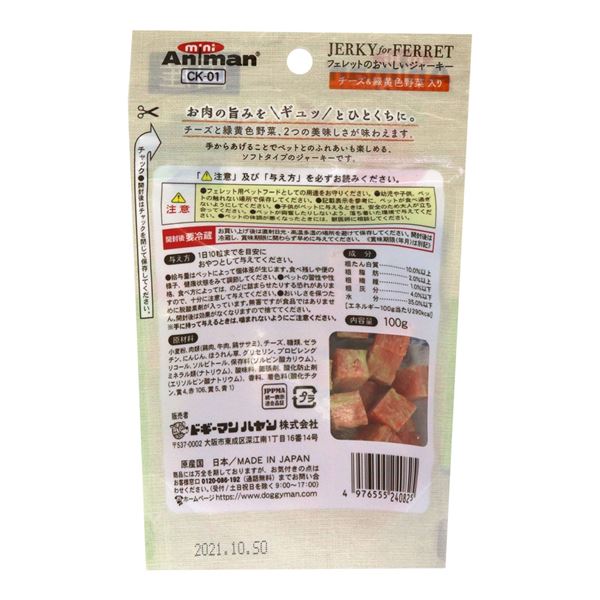 (まとめ)ドギーマンハヤシ フェレットのおいしいジャーキー チーズ&緑黄色野菜入り 100g 小動物用おやつ 【×10セット】