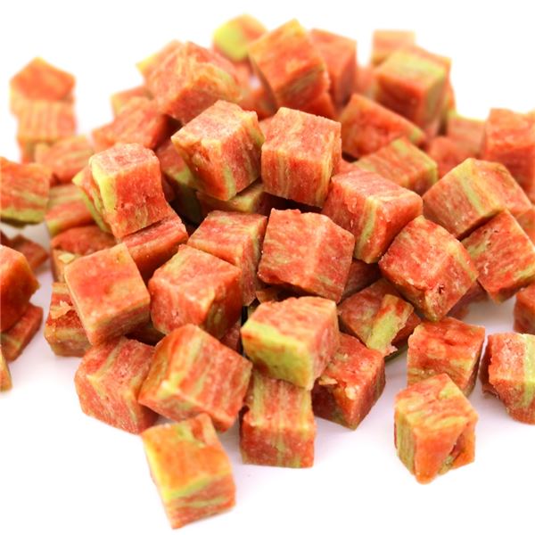 ・やわらかい食感のジャーキーなので手で小さくちぎりやすく、食べやすい角切りタイプ。