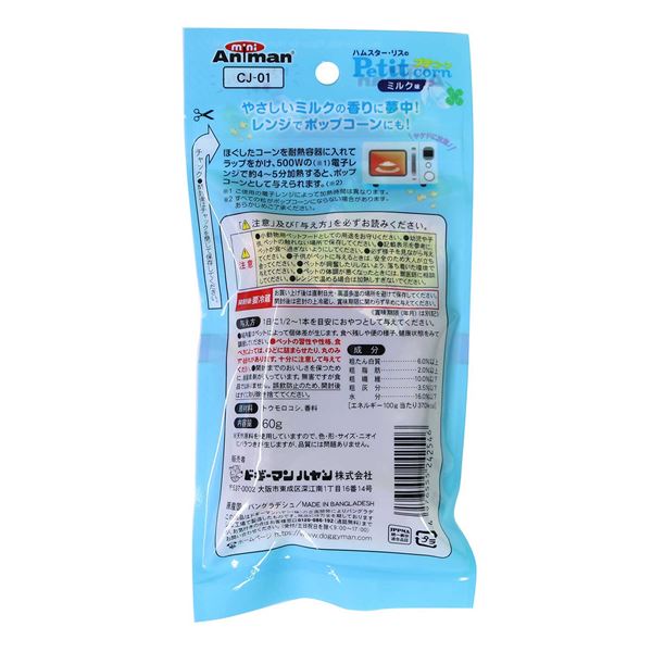 (まとめ)ドギーマンハヤシ ハムスター・リスのプチコーン ミルク味 60g ウサギフード 【×10セット】