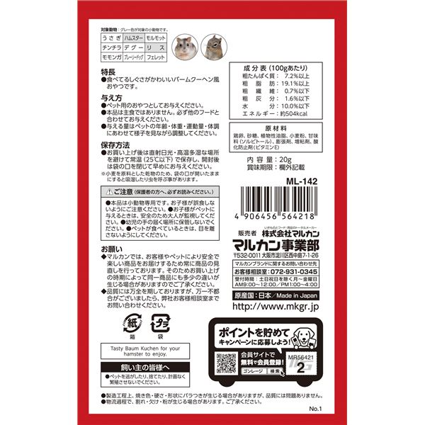 ■諸注意 ・本品は小動物専用です。お子様が誤食しないようにご注意ください。