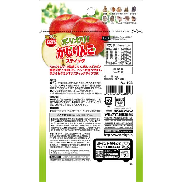 ・リンゴをじっくり乾燥させて、楽しいポリポリ食感に仕上げました。ペットが食・べやすく、手からも与えやすいスティックタイプです。