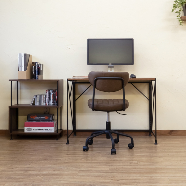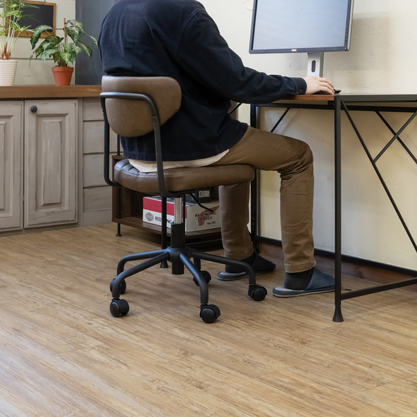 スチールとフェイクレザーを組み合わせた落ち着いた雰囲気に仕上げたオフィスチェア。