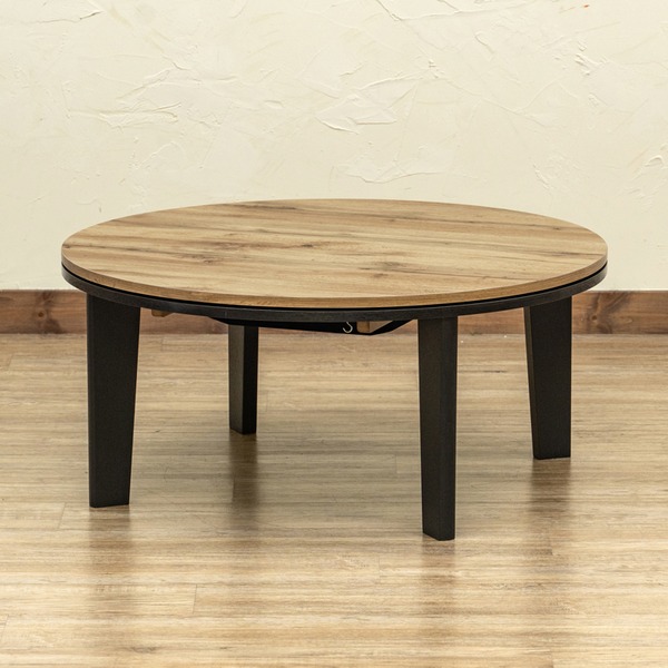 重厚なヴィンテージテイストの木目調天板が特徴の丸型コタツです。