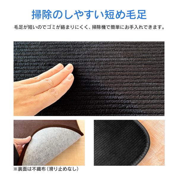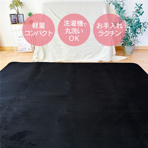 ラグ 軽量 ウォッシャブル 約180×230cm 3畳 ブラック シンプル ストライプ ラグマット【代引不可】