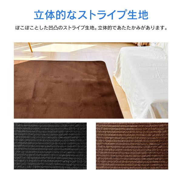 ぽこぽことしたさりげないストライプ柄がかわいい、シンプルな軽量ラグ。ご家庭の洗濯機で洗えるので、いつでも清潔にお使いいただけます。薄手の軽量タイプなので、女性でも移動や片付けもラクチン。