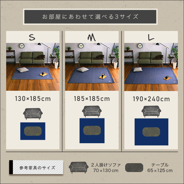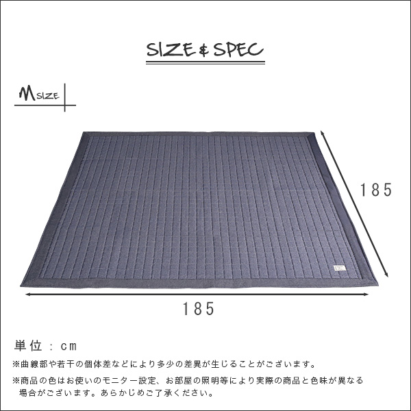 手洗いできて、オシャレなキルティングデニム調ラグ【Mサイズ185×185cm】
