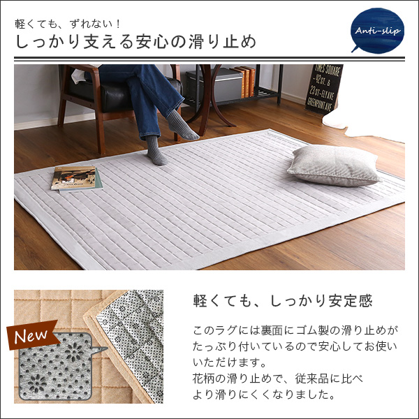 キルティングデニム調ラグMサイズ(約185x185cm)オールシーズン、滑り止め付き、手洗い対応 モカ【代引不可】