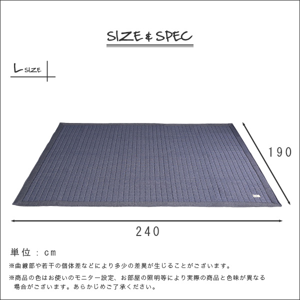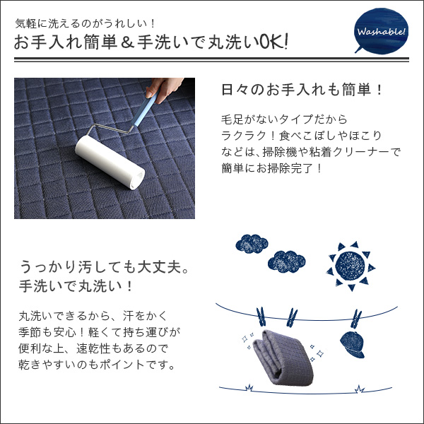 手洗いできて、オシャレなキルティングデニム調ラグ【Lサイズ190×240cm】