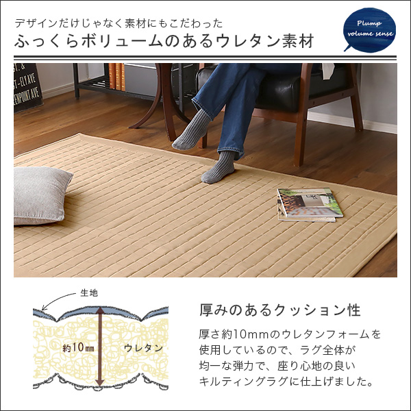キルティングデニム調ラグLサイズ(約190x240cm)オールシーズン、滑り止め付き、手洗い対応 モカ【代引不可】