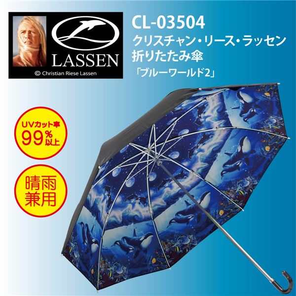 ユーパワー クリスチャン・リース・ラッセン 折りたたみ傘 晴雨兼用 「ブルーワールド2」