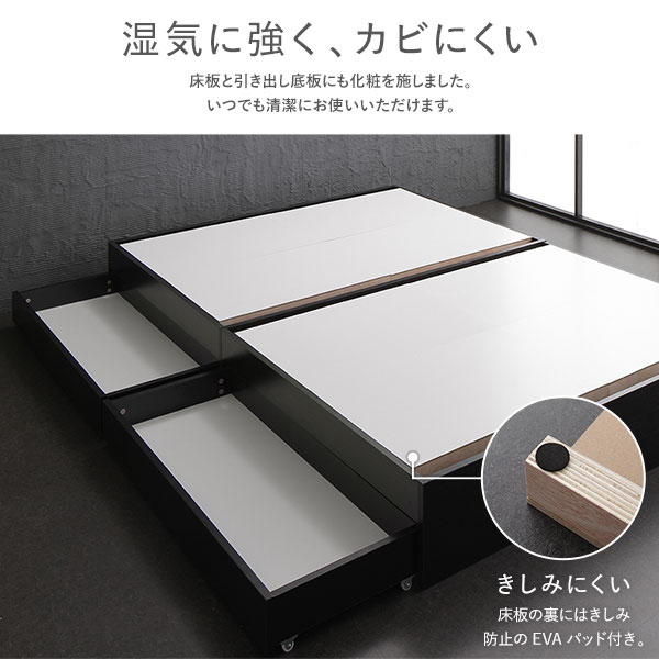 ベッド下には2杯の引き出し収納が付いています。