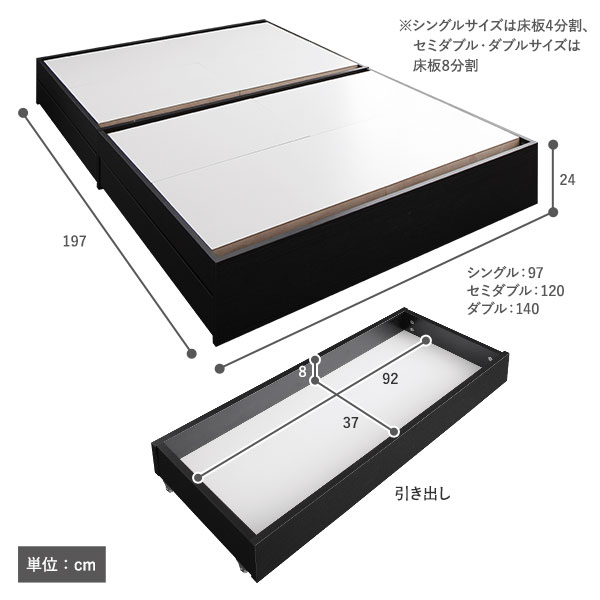 ※シングルは床板4分割、セミダブル・ダブルは床板8分割