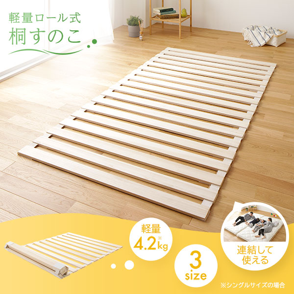 ロール式 すのこ ベッド シングル 2層ポケットコイルマットレス付き 通気性 木製 天然木 桐 軽量 連結可 コンパクト 収納 折りたたみ すのこベッド