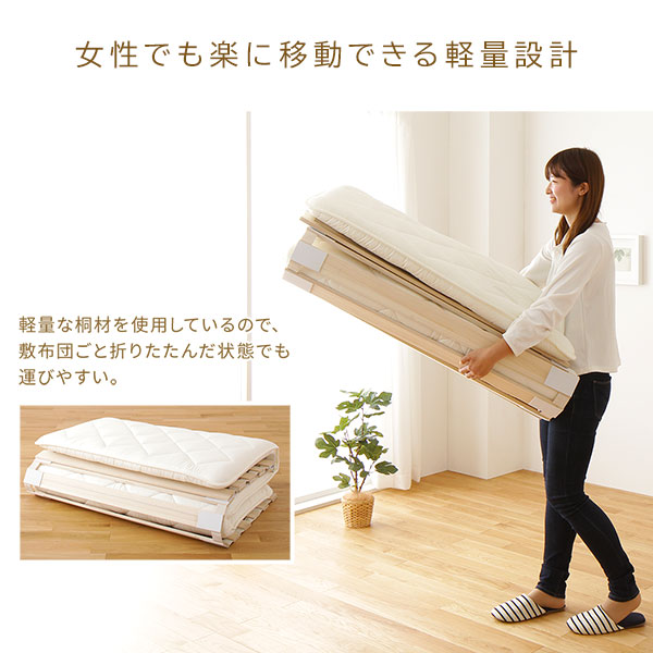 軽量な桐材を使用しているので、敷布団ごと折りたたんだ状態でも運びやすい。