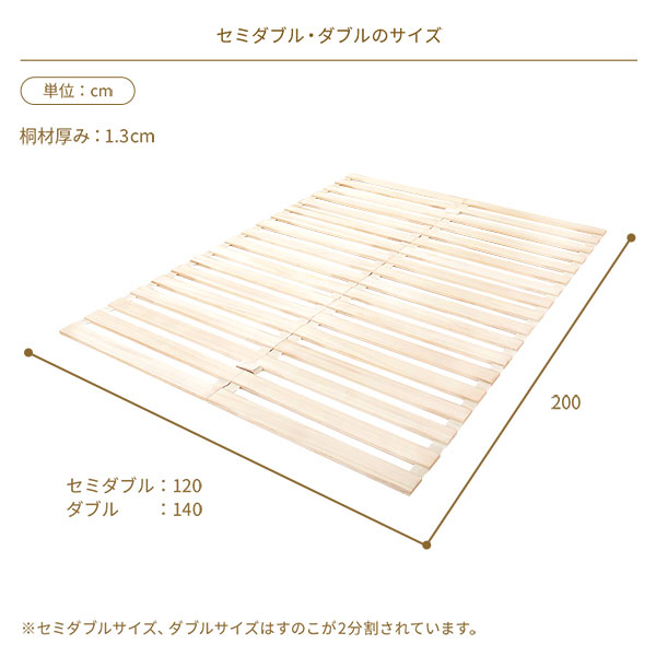 ・セミダブルサイズ、ダブルサイズはすのこが2分割されています。