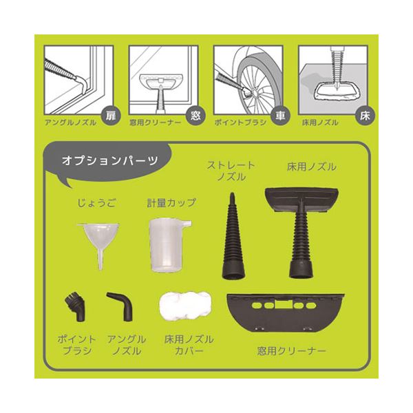 ●豊富なオプションパーツが付属するスチームジェットクリーナー。